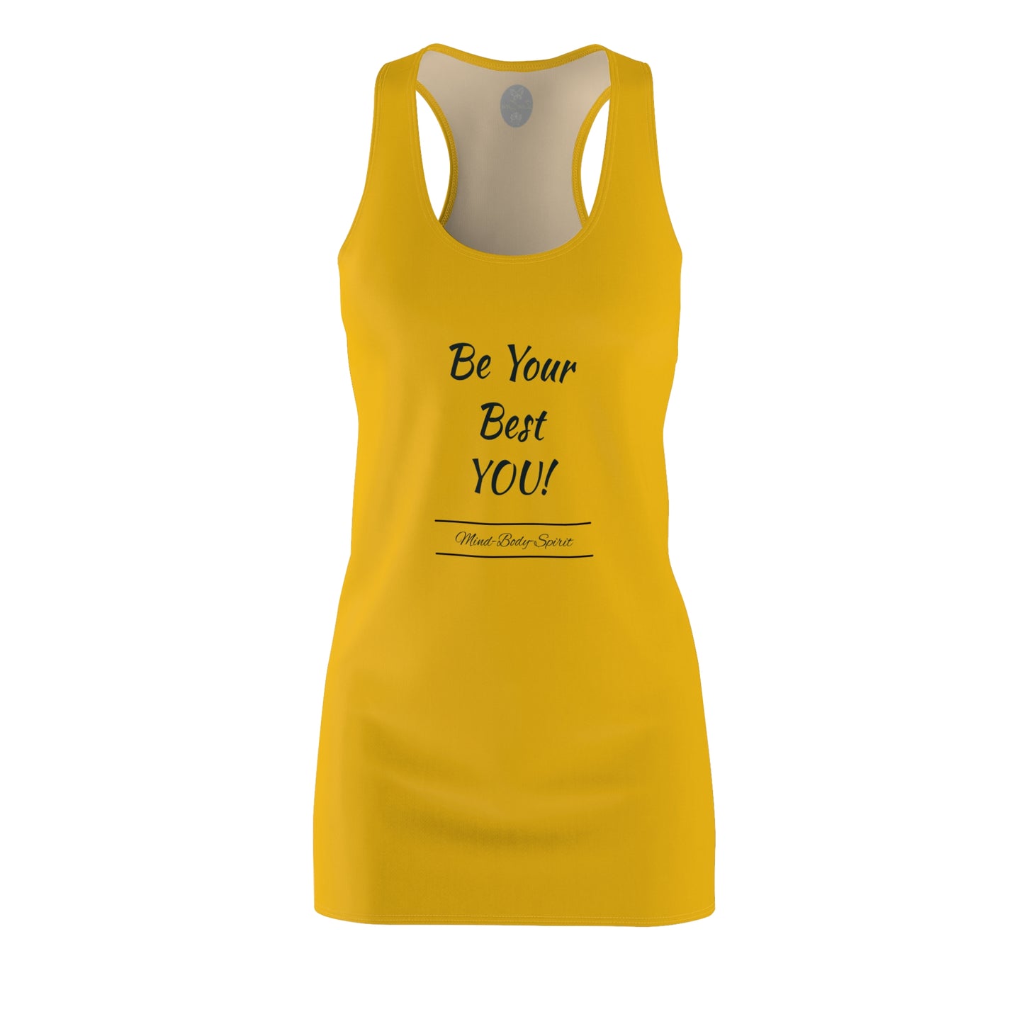 This feminine and stylish yet comfortable dress. High-quality AOP racerback dress is appealing from every angle. Inspired by the freedom of creativity, it will instantly become everyone's all-time favorite. A simple reminder to "Be Your Best YOU!" can change you and the world; share the message.